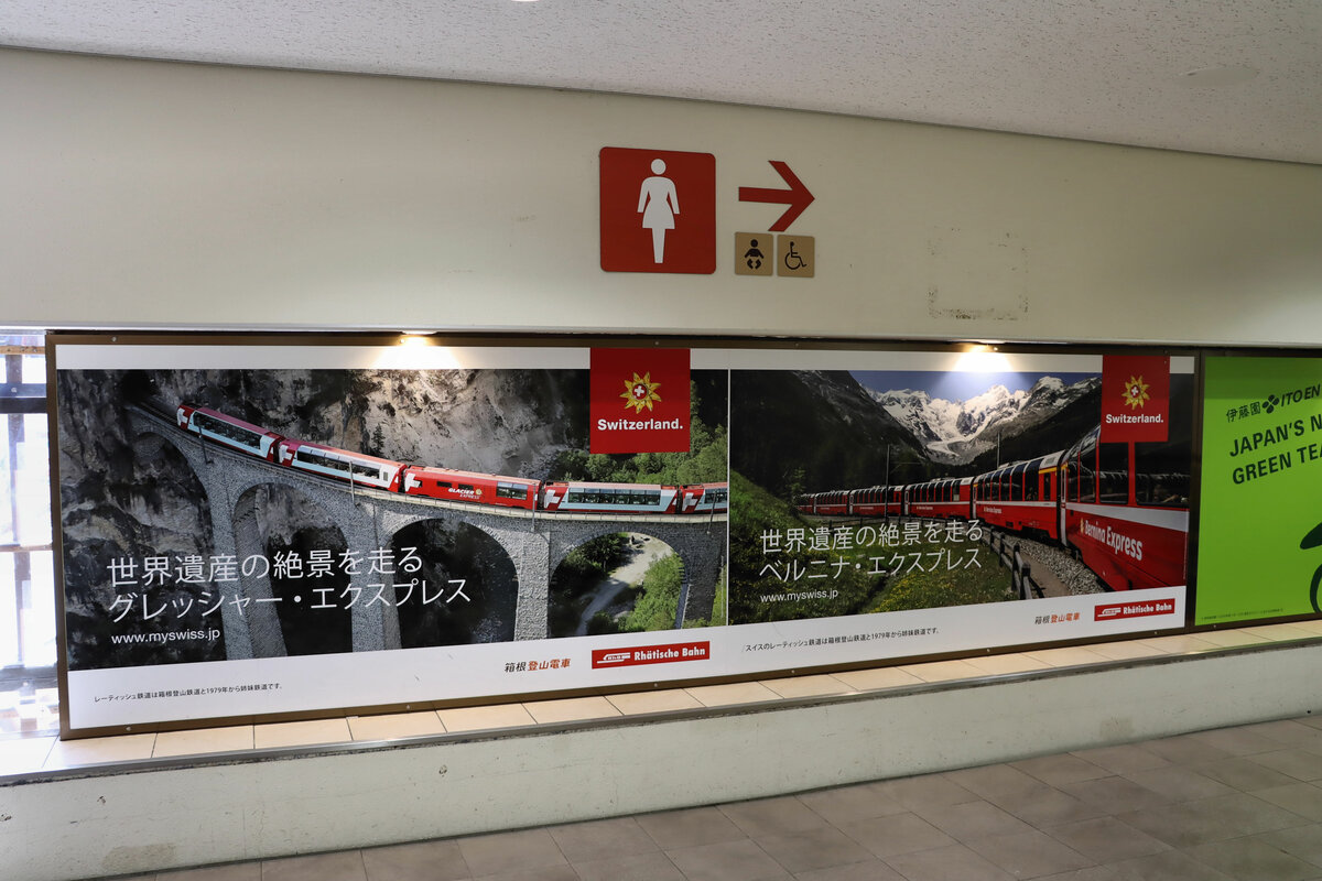 Die Hakone Tozan Bahn, Partnerbahn der RhB, im unteren Abschnitt: In der ersten Station des Aufstiegs wird tatsächlich und wortwörtlich Geld gewaschen. Weil hier das Wasser so klar hervorsprudelt, haben sich in den 1920er Jahren reiche Manager hier einen Badeort geschaffen und einen Schrein zu Ehren der Gottheit Benzaiten, wo das Waschen von Münzen deren Vermehrung bewirken soll. Wichtig sei aber, dass man die mehr gewordenen Münzen schnell ausgibt. Während der Zug hier in Tônosawa auf einen Gegenzug wartet, steht die Schaffnerin stramm am Zugsende und überwacht die Situation. 12.April 2022
