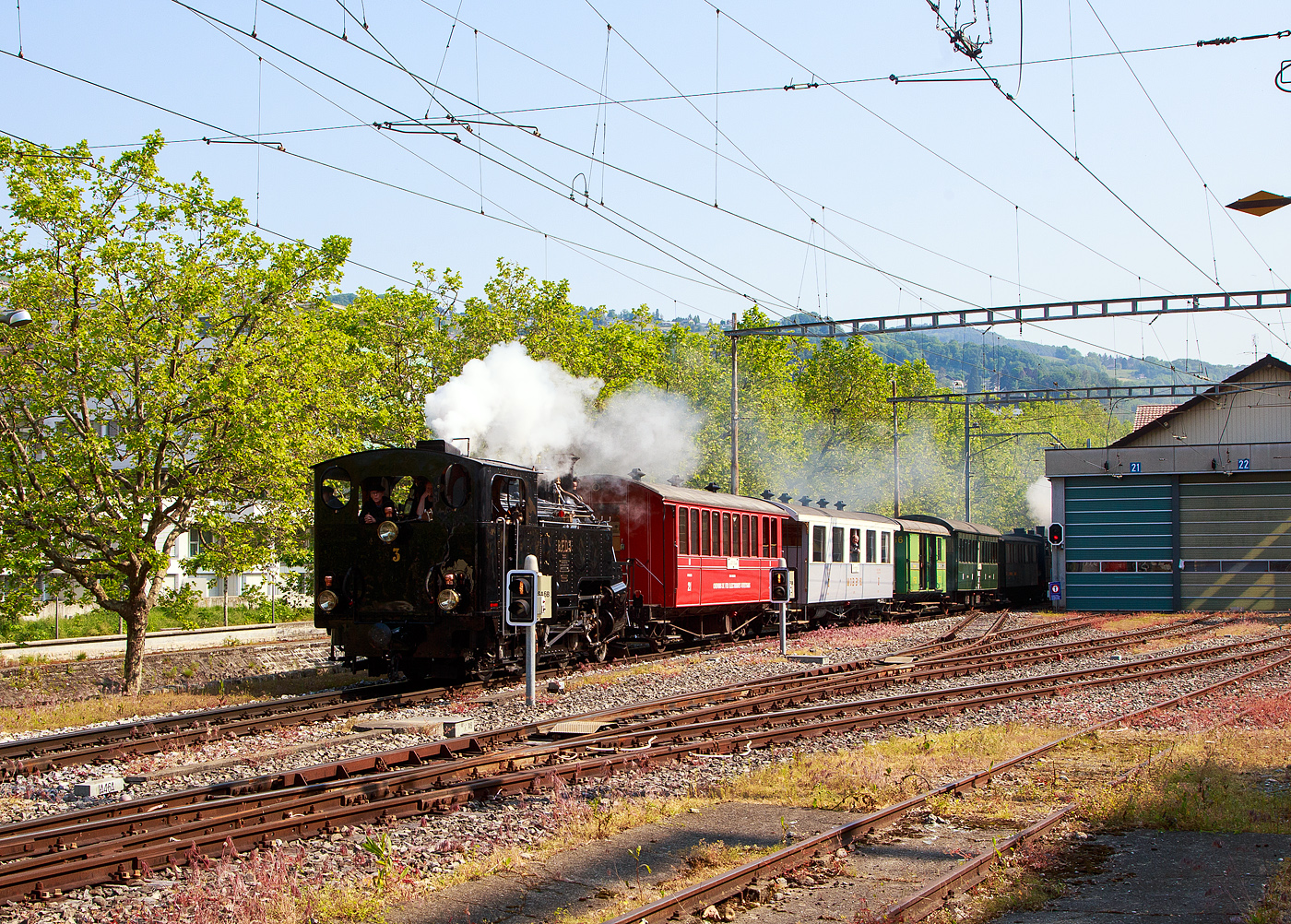 Die RB H 2/3 N° 16 mit ihrem Dampfzug kurz vor der Station Rigi Staffel.