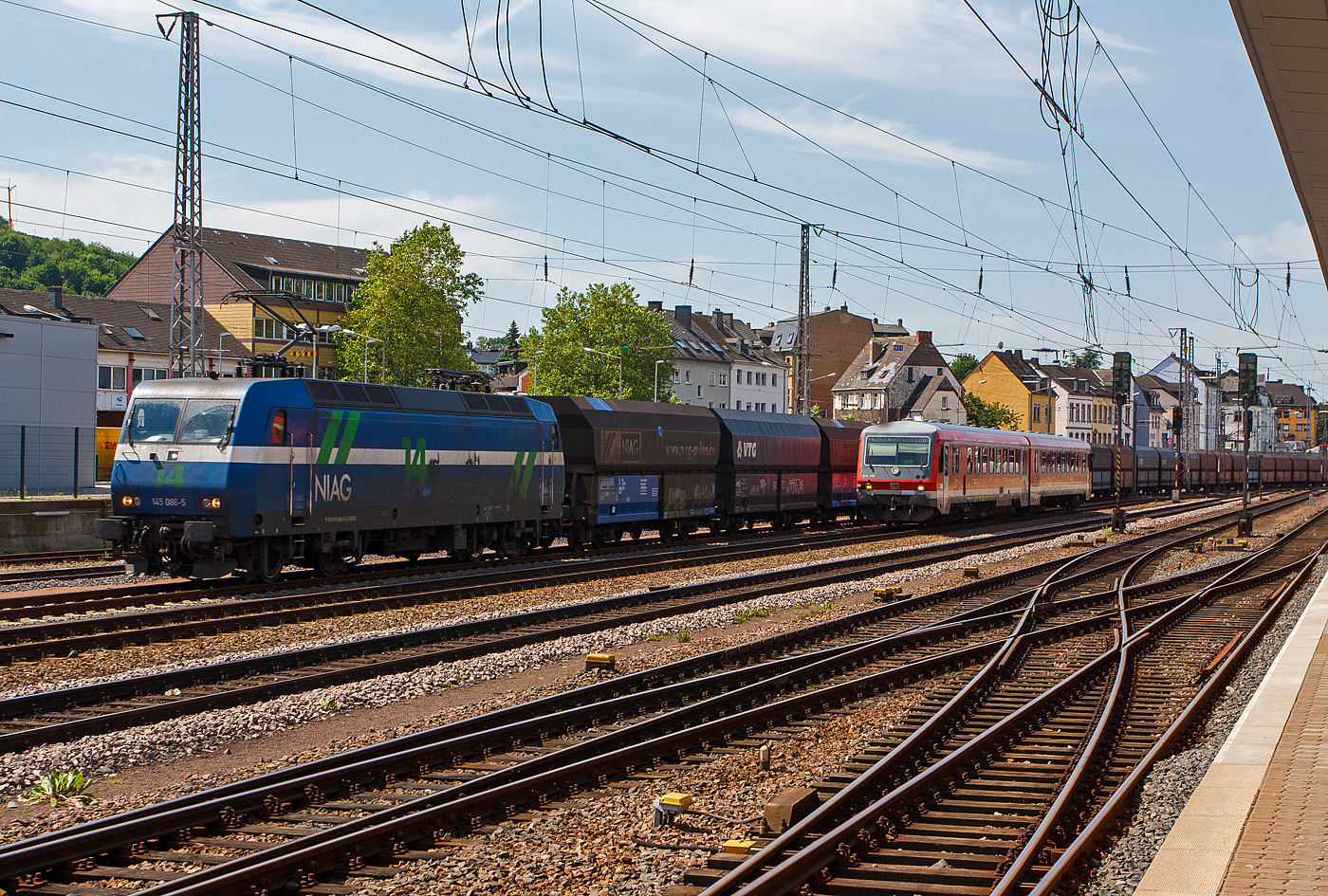 Die 145 030-7 "20 Jahre PRESS Pressnitztalbahn" eigentlich die 145 085-7 (91 80 6145 085-7 D-PRESS) der PRESS - Eisenbahn-Bau- and Betriebsgesellschaft Pressnitztalbahn mbH (Jöhstadt), ex SBB Cargo Re 481 003-2, ex MThB Re 486 653-9, ist am 12.11.2021 beim Hauptbahnhof Siegen abgestellt.