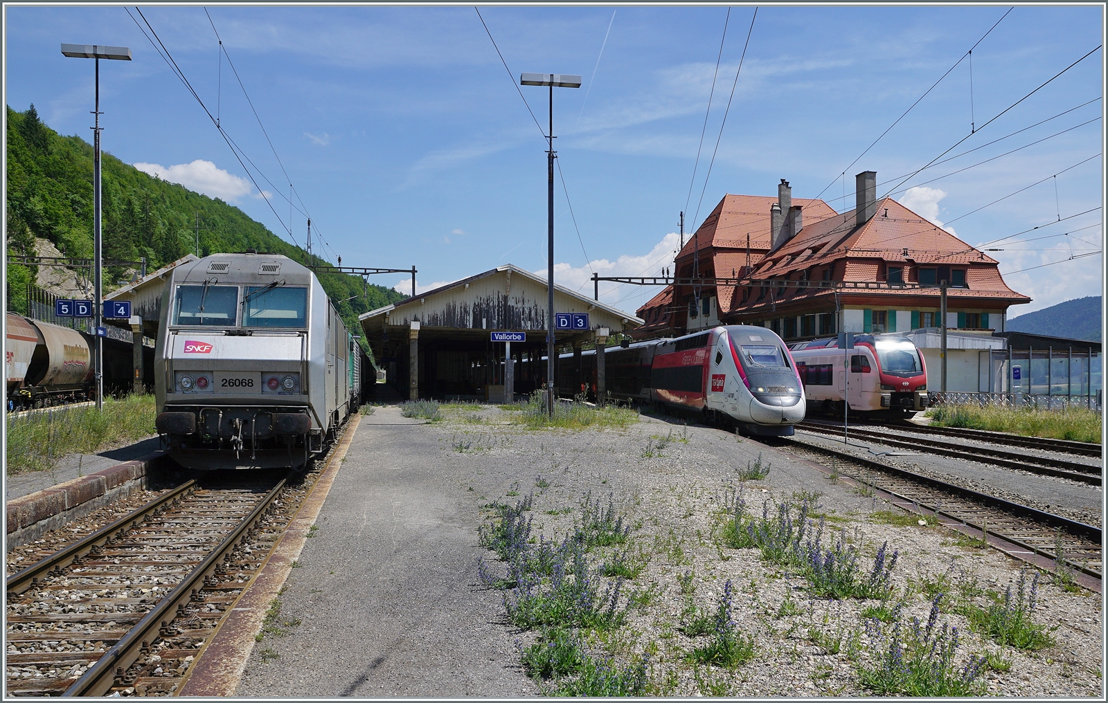 Die abgebügelte SNCF Sybic BB 26061 wurde von der SBB Re 6/6 11615 (Re 620 015-8) abgestossen und fährt nun in den SNCF Strombereich im westlichen Bahnhofskompf.