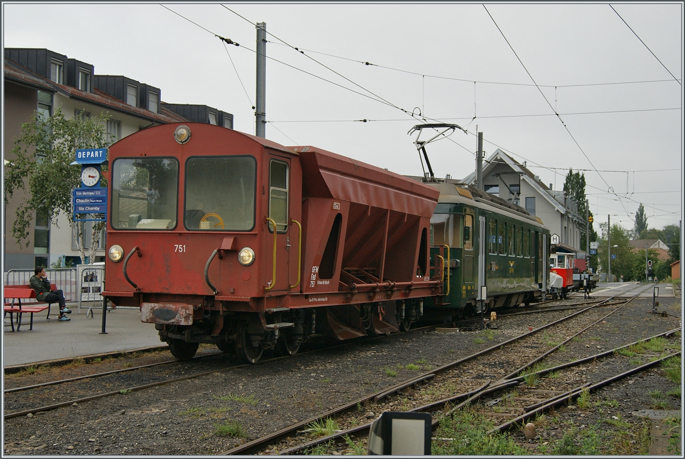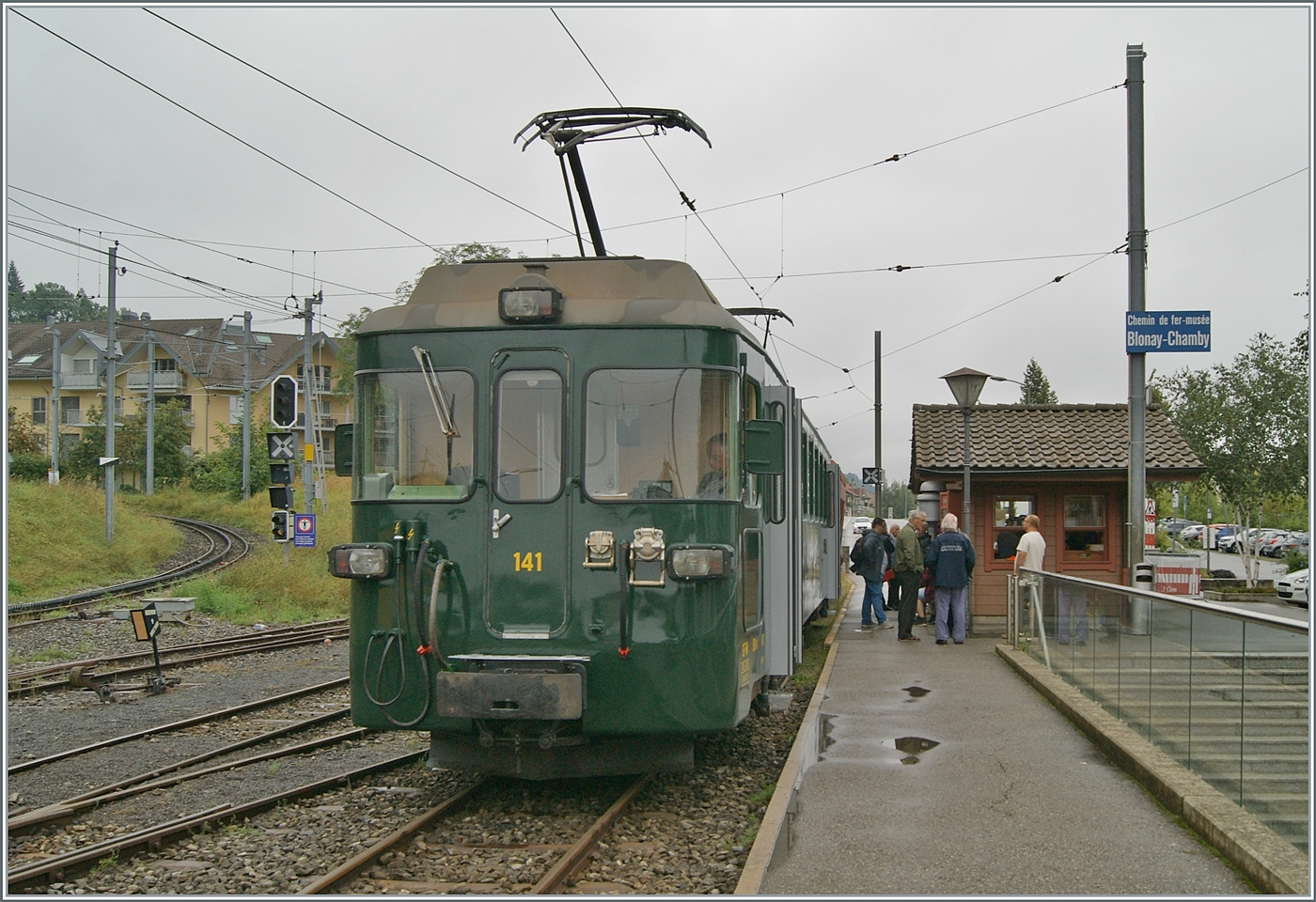 Das Bild zeigt den BDe 4/4 141 in Blonay nach der Ankunft aus Chaulin.