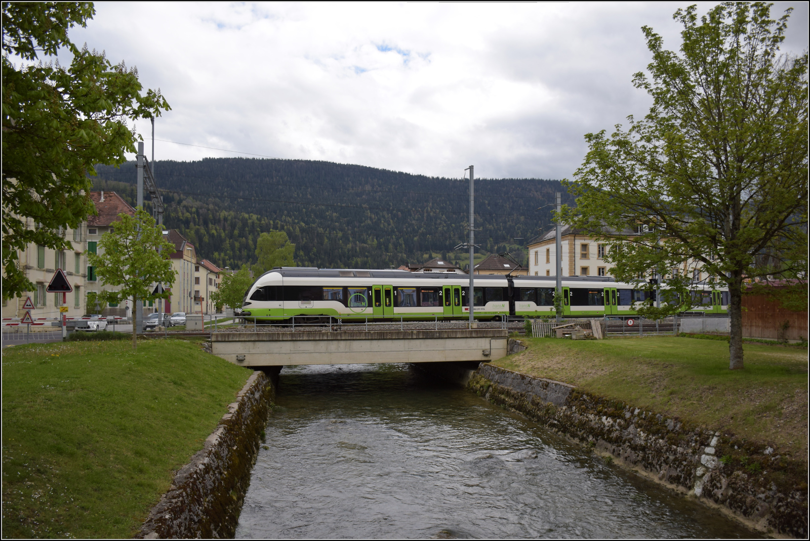 Ein SBB Regionalzug von Neuchâtel kommend, wendet in kleinen Kopfbahnhof von Buttes für die baldige Rückfahrt nach Neuchâtel. Zug- bzw. Schiebelok ist eine SBB Cargo Re 420. 19. Nov. 2009