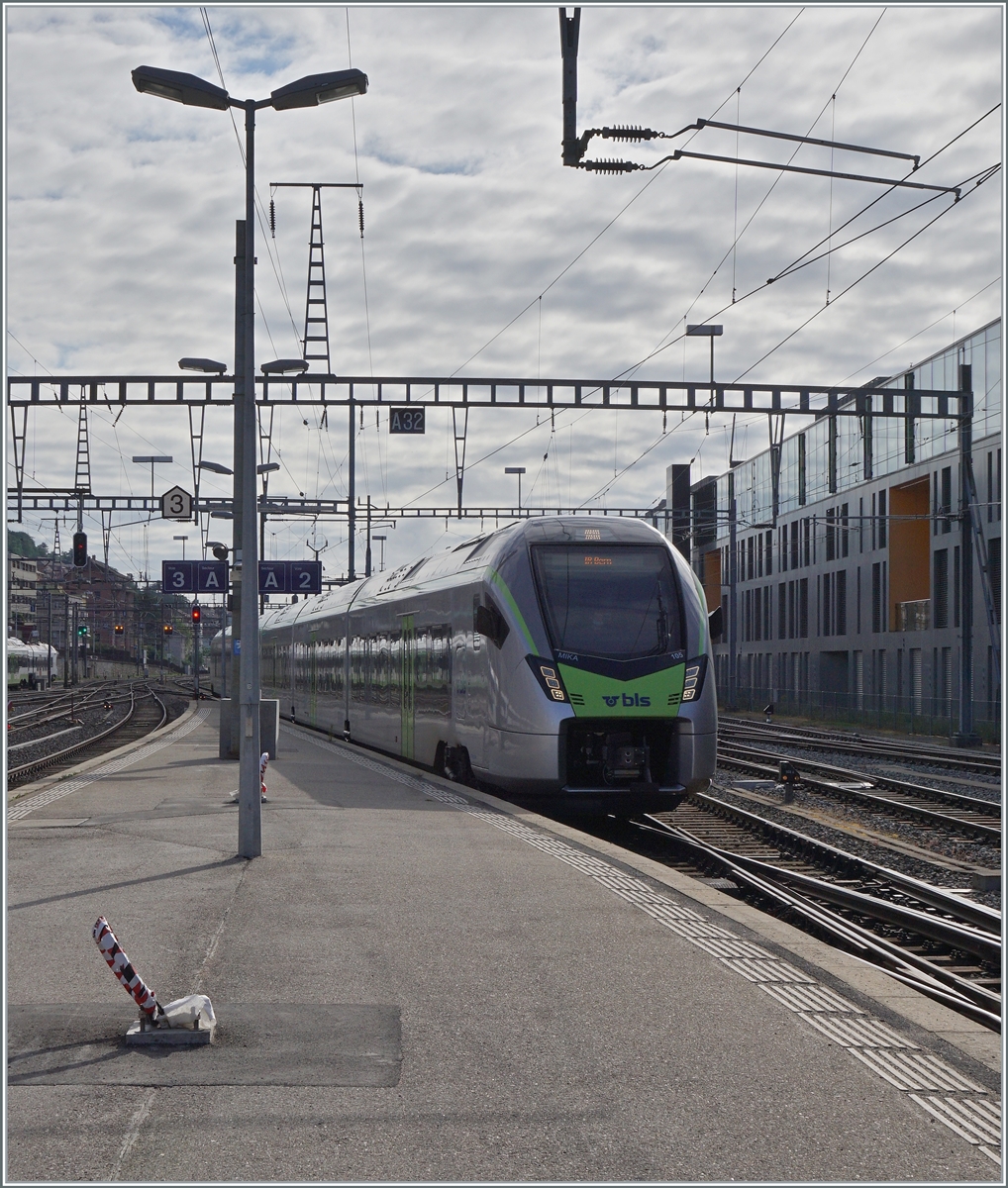 Die Ablösung der EW III: der MIKA. Der BLS 528 105 erreicht als IR von Bern kommend Neuchâtel. Baustellenbedingt endet hier die Fahrt (statt in La Chaux-de-Fonds).