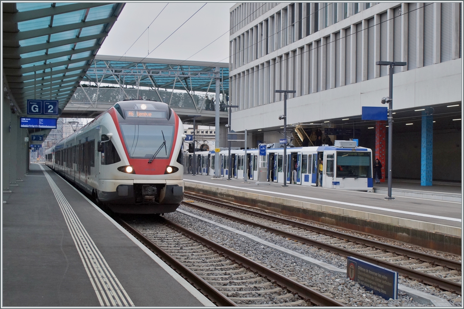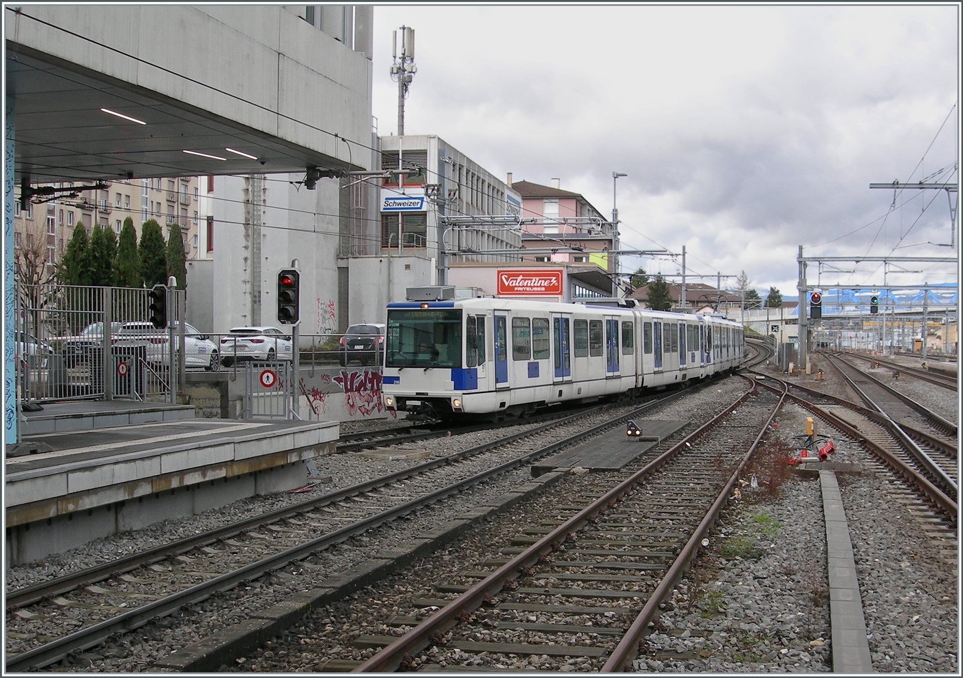 Ein SBB RBDe 560 Domino als S4 nach Palézieux erreicht den bereits erneuerten Bahnsteig 5 in Renens VD.