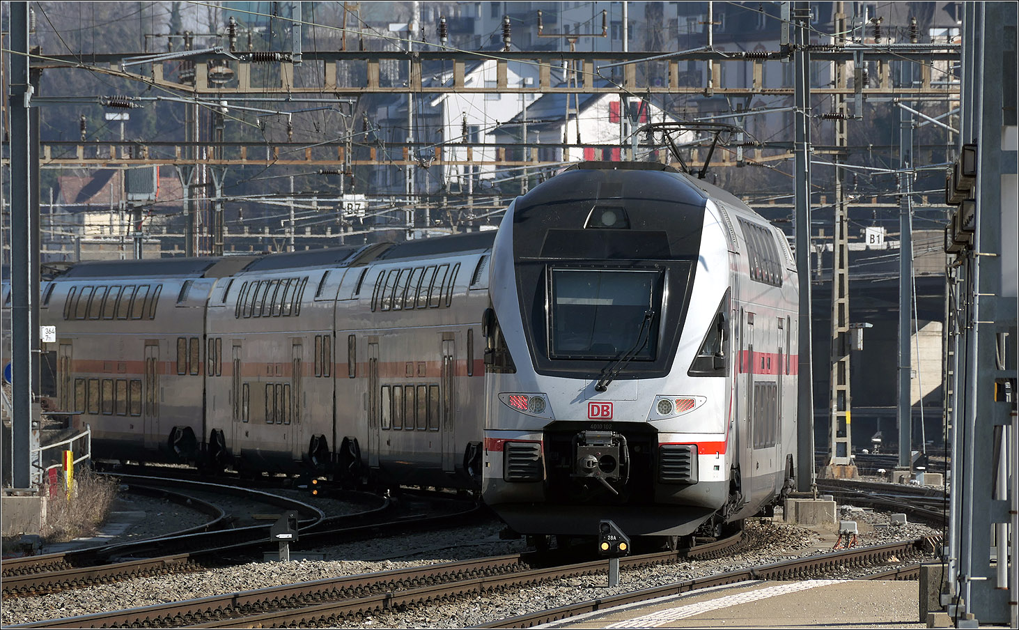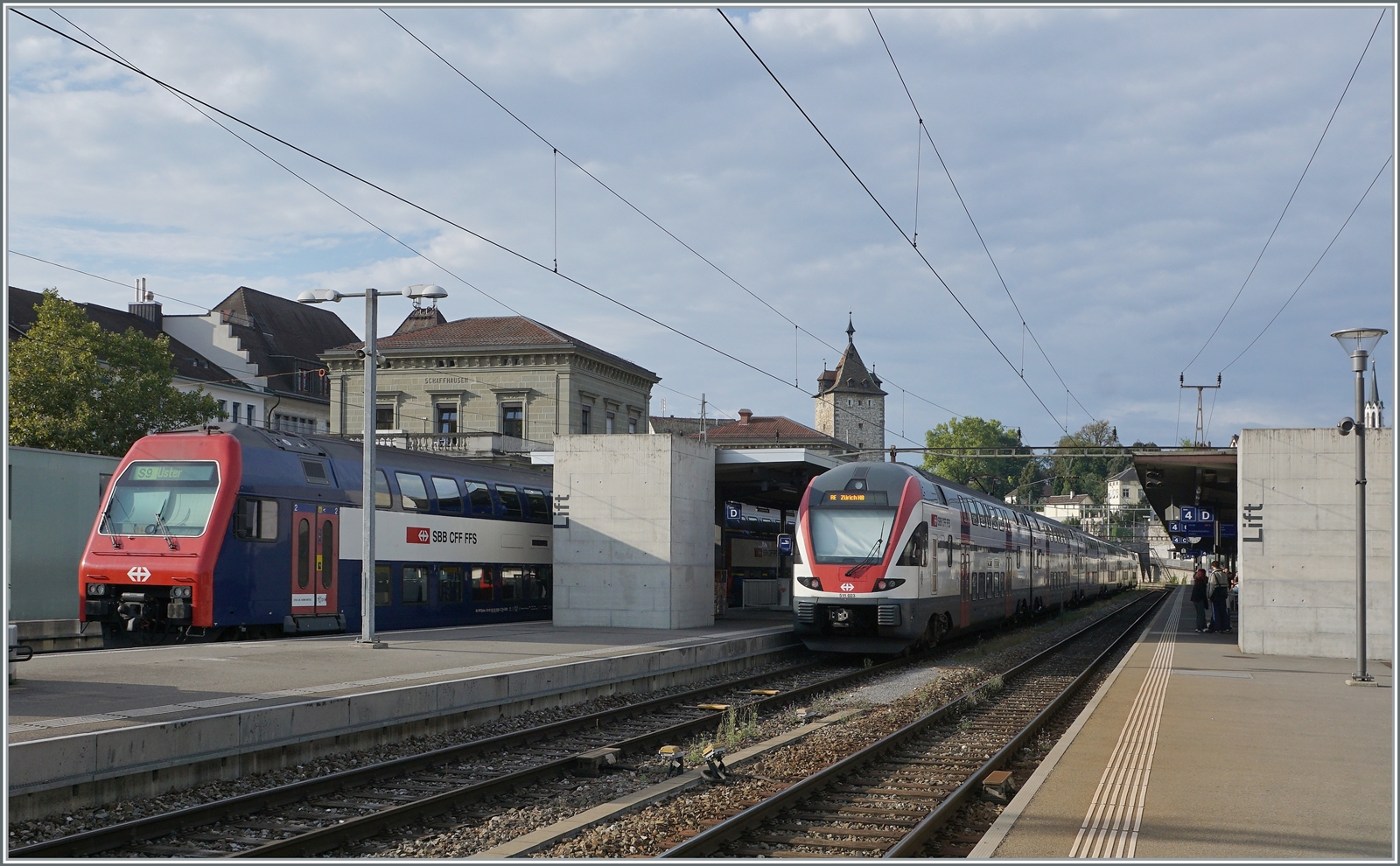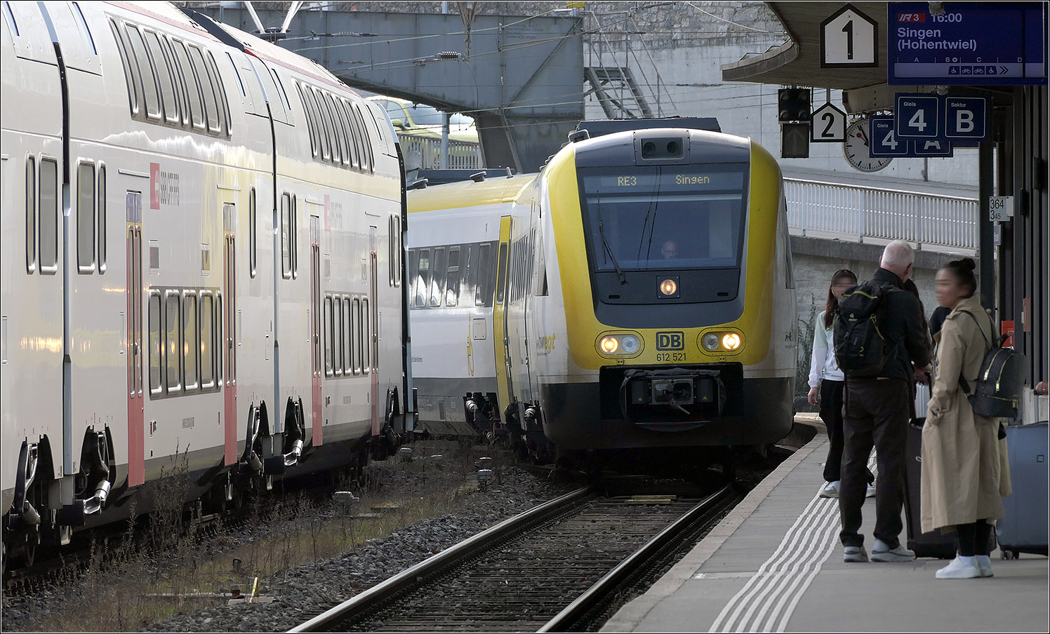 Die SBB Re 4/4 II 11130 ist von Zürich HB kommend mit ihrem IC 4 nach Stuttgart in Schaffhausen angekommen und wird in Kürze nach Singen weiterfahren.