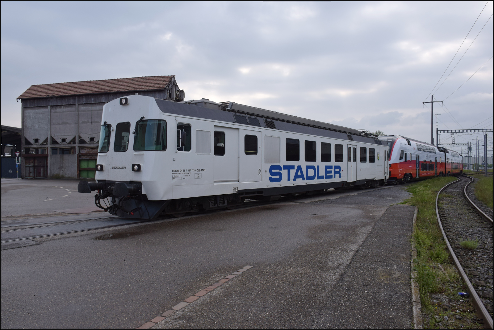 S-Bahn Verkehr in St.Margrethen: SOB RABe 526 056-7 als S 4 nach Sargans und ÖBB 4024 023-6 der Voralberger S-Bahn nach Bregenz.