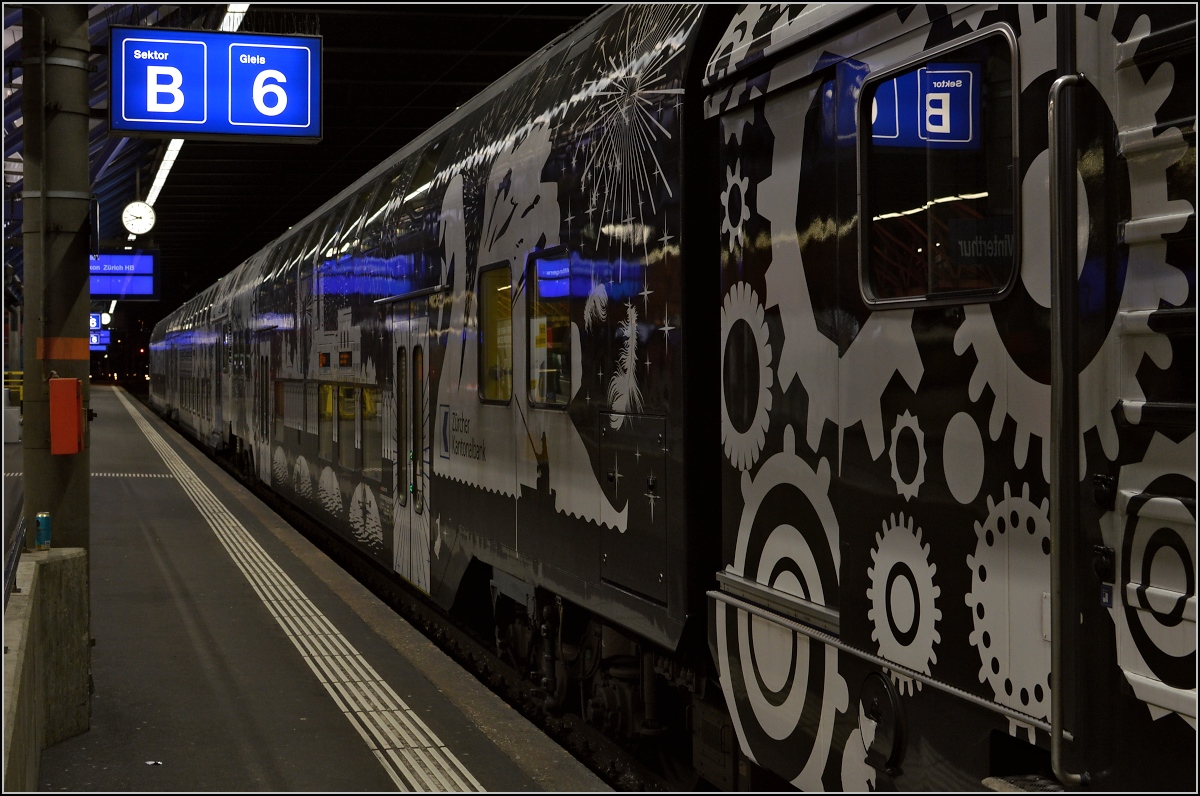 Aussergewöhnlich dekorierte S-Bahn in Winterthur. Oktober 2014.