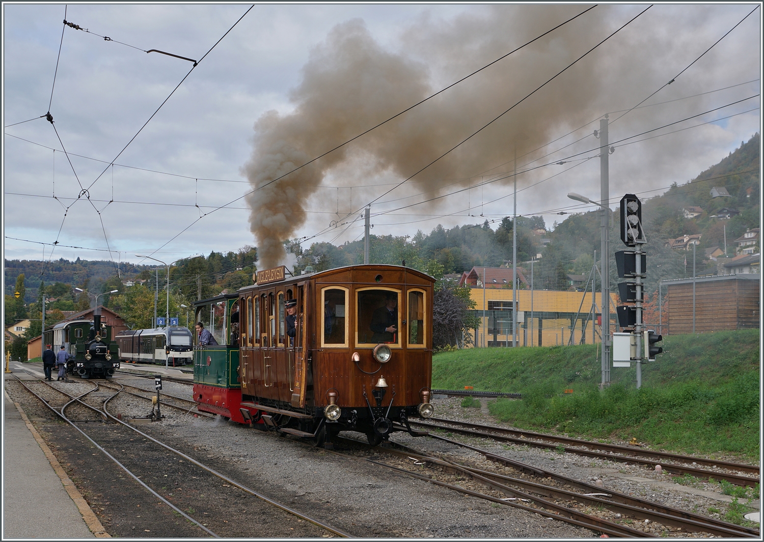 Schweizer Dampftage Brienz 2018: Die kleine G 2/2 Ticino von Martin Horat bot für gross und Klein Führerstandfahren an.
