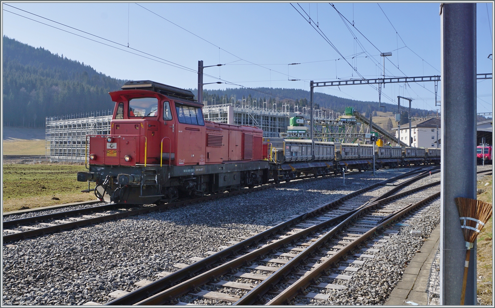 Die Bm 4/4 18435 besorgt den Rangierdienst in Brig.