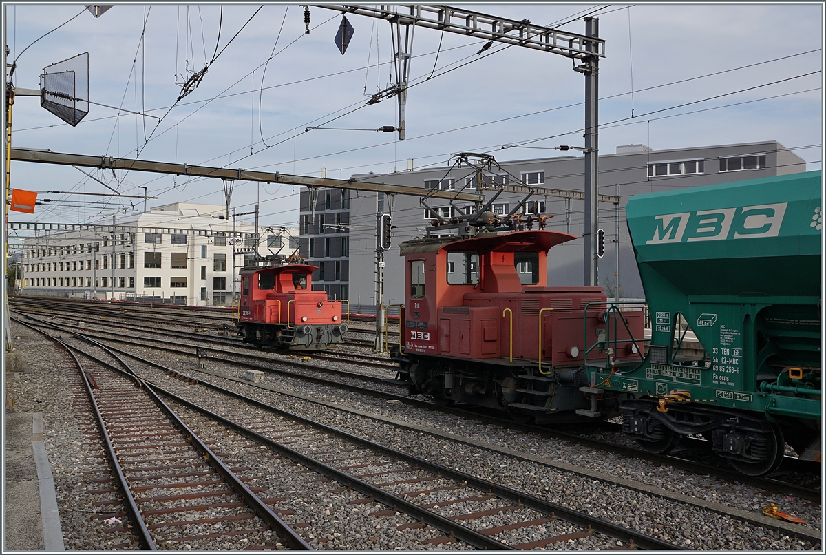 Zwei von drei BAM MBC Rangierloks in Morges: Rechts die Te 2/2 III 147 und links die Tem III 329 (97 85 1 220 329-7), welche ein Neuzugang zu sein scheint.