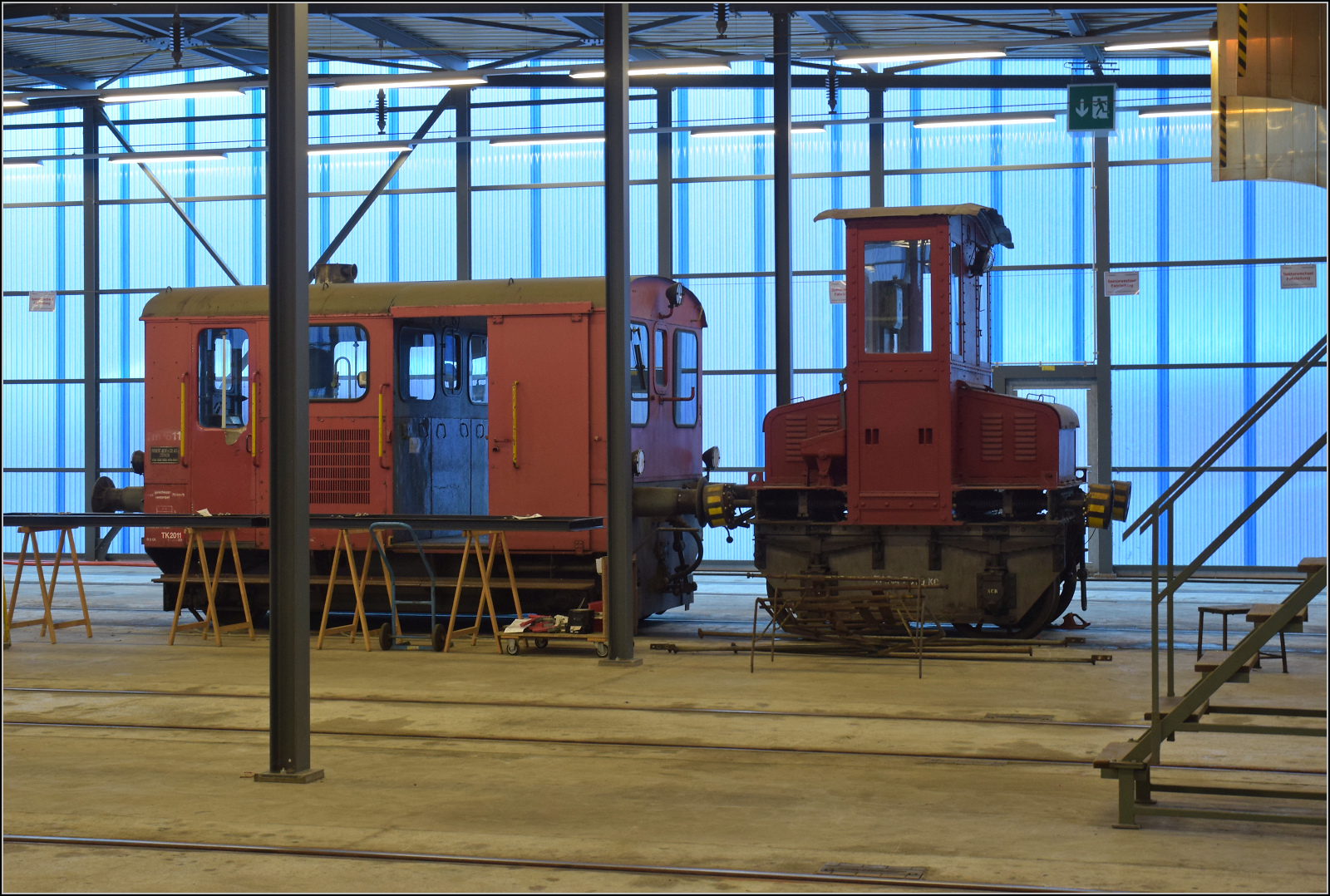 Rangiertraktor Tm II 611 und Tintenfisch Ta in älterer Bauweise. Dem Gewicht nach müsste es sich um Ta 967 (Baujahr 1943) handeln. August 2023.