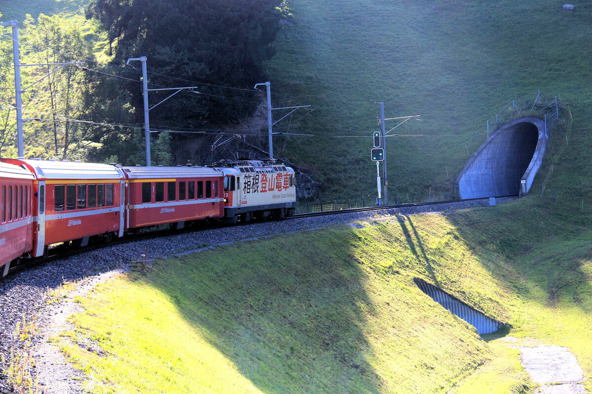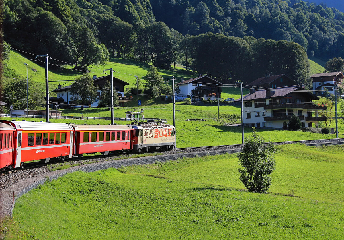 Die RhB Ge 4/4 II 630 verlässt mir einem RE nach Disentis Chur.