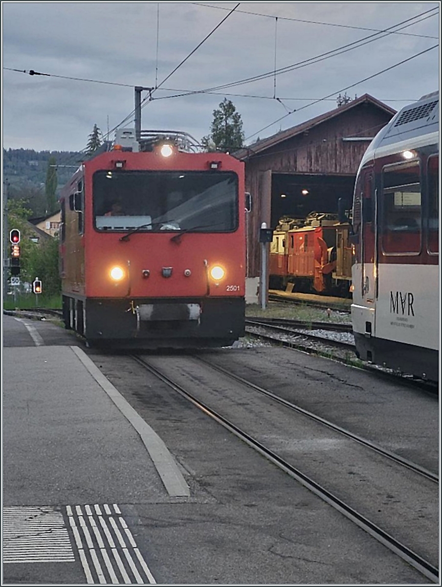MVR HGem 2/2 2501 und MOB Hem 2/2 2502 in Vielfachsteuerung in Chernex. (Inbetriebnahme durch Stadler).