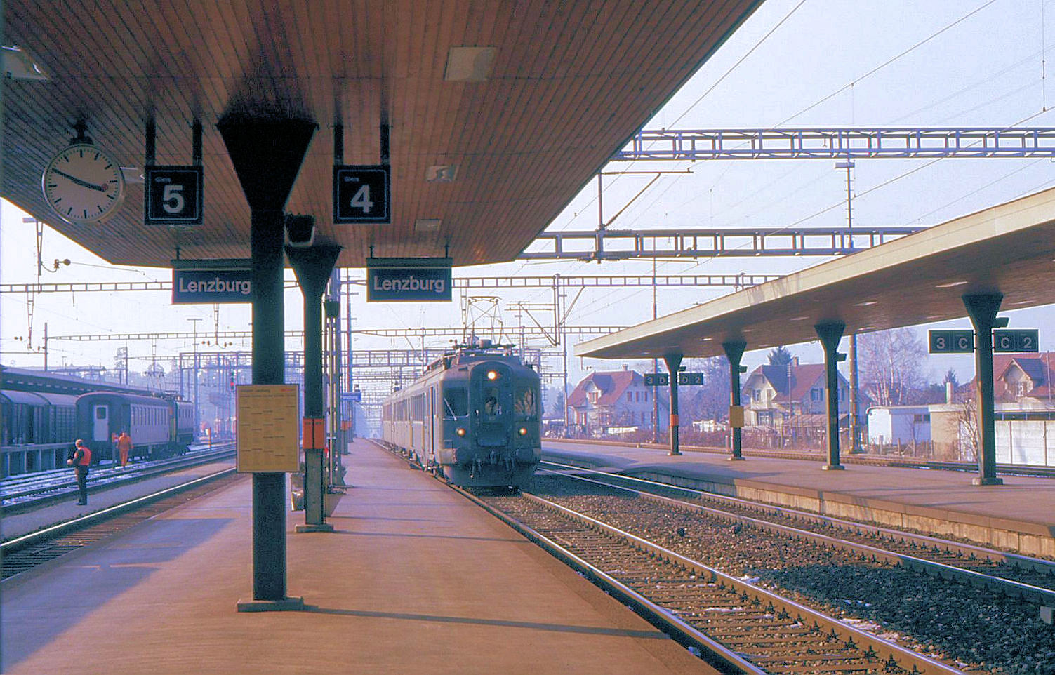 Die SBB Ae 4/7 10963 wartet mit dem 62378 in Mellingen auf die Weiterfahrt in Richtung Lenzburg. Interessant ist der Plattform Reisezugwagen gleich hinter der Lok. Wagen dieser Bauart waren im Seetal im Einsatz.