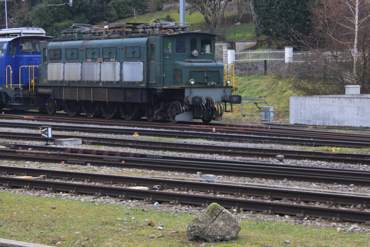 In Payerne vor dem passenden Dépôt steht die ex SBB Ae 4/7 11000.