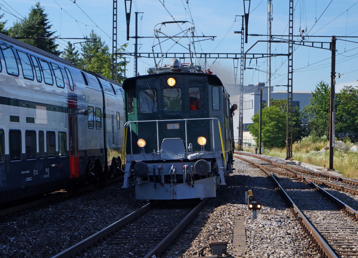 da die Re 4/4 I 10042 dem gleichen Besitzer wie die EBT Be 4/4 105 gehört, beide bislang offenbar in Horb in der Eisenbahnwelt ausgestellt waren, gehe ich davon aus, dass es sich hier um ebendiese EBT-Lok handelt.