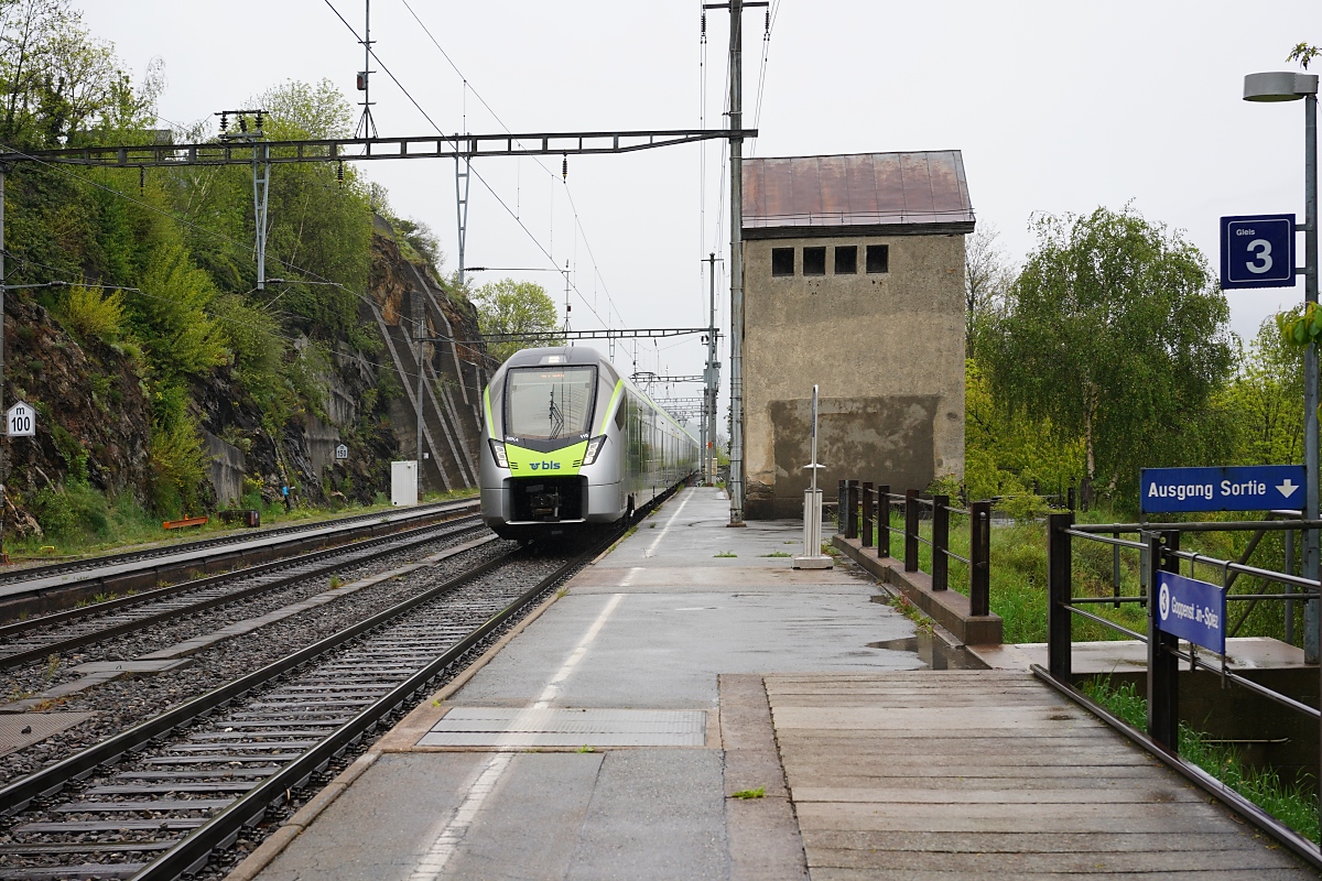 Eine SBB Re 460 mit einem IC von Romanshorn nach Brig zwischen Mülenen und Reichenbach im Kandertal.