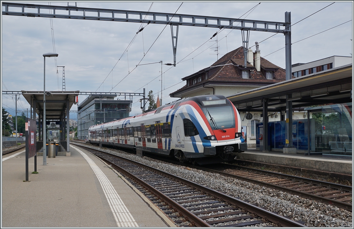 Eine SBB Re 460 ist mit einem IR 90 von Brig nach Genève Aéroport in Versoix unterwegs.