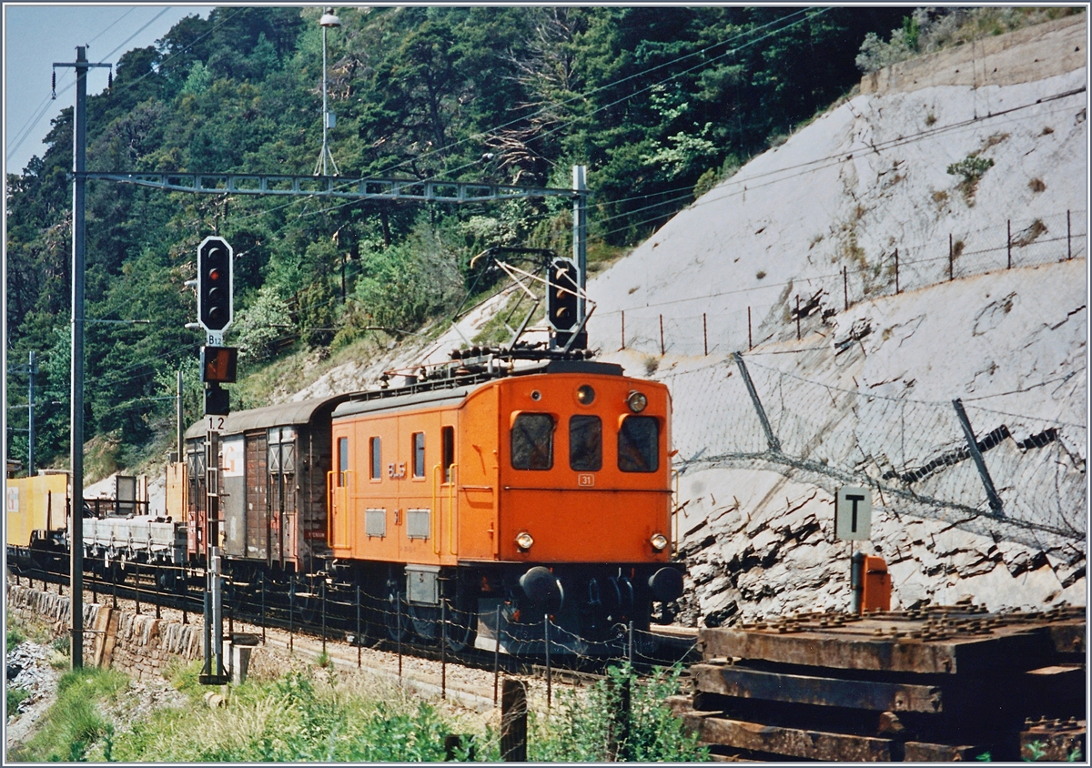 Als Ergänzung zu Ollis Bildern des BLS Te 2/3 31, einige Bilder aus der Einsatzzeit des BLS Te 215 031-6: der Te 215 031-6 beim Manöver in Hohtenn. Juni 1996