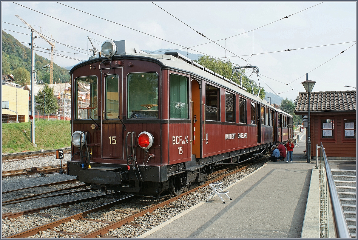 Der M-C BCFeh 4/4 N° 15 kurz nach Chaulin auf der Fahrt nach Blonay.