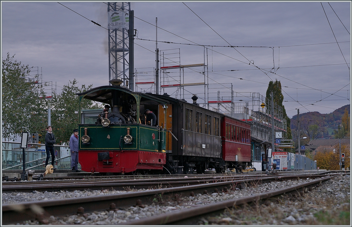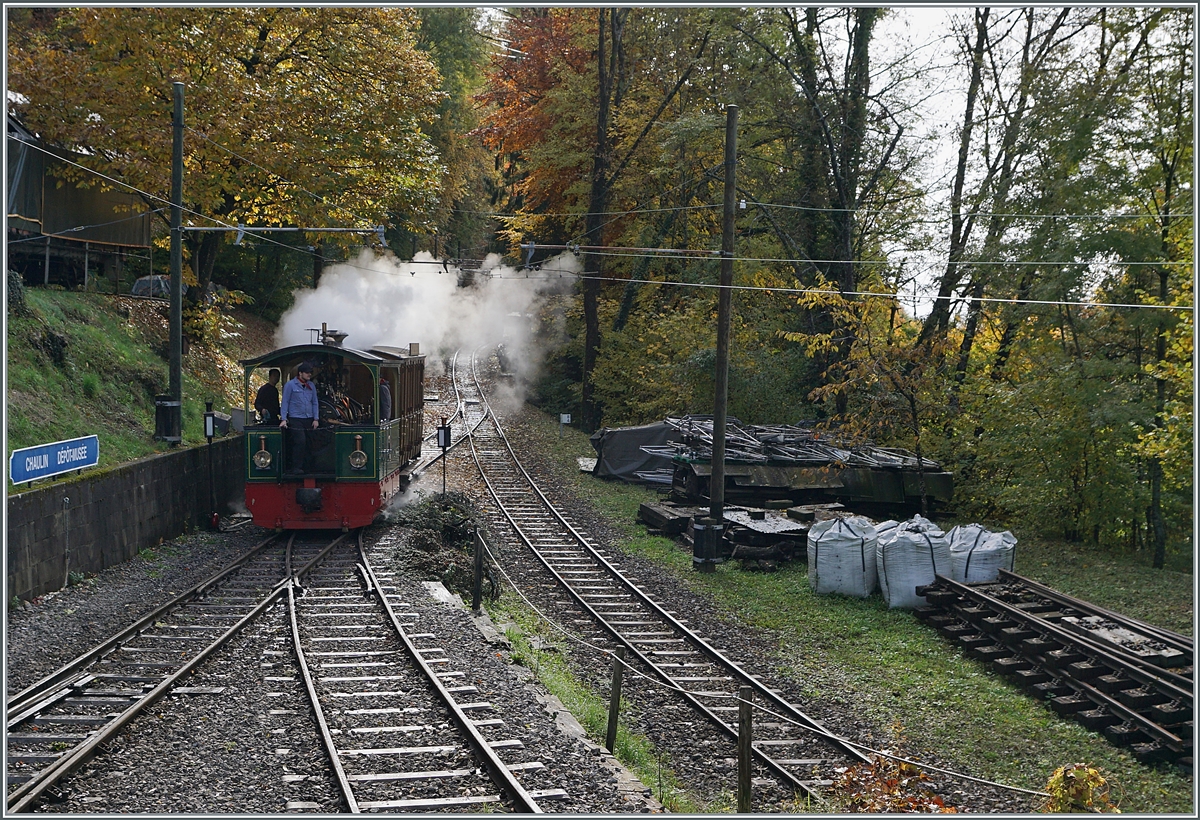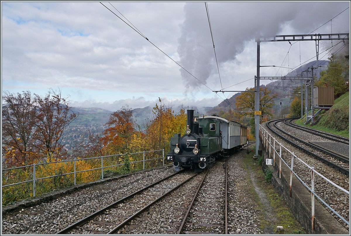 "LA DER 2020 du Blonay-Chamby" / Saison Abschluss der Blonay-Chamby Bahn: Mit einem verstärkten Fahrplan und viel Dampf wird vor dem "Winterschlaf" (bzw. Arbeit im Dépôt Chaulin) nochmals viel Betrieb gemacht. Die LEB G 3/3 N° 5 (Baujahr 1890) hat mit ihrem Personenzug von Blonay nach Chaulin ihr Ziel erreicht.