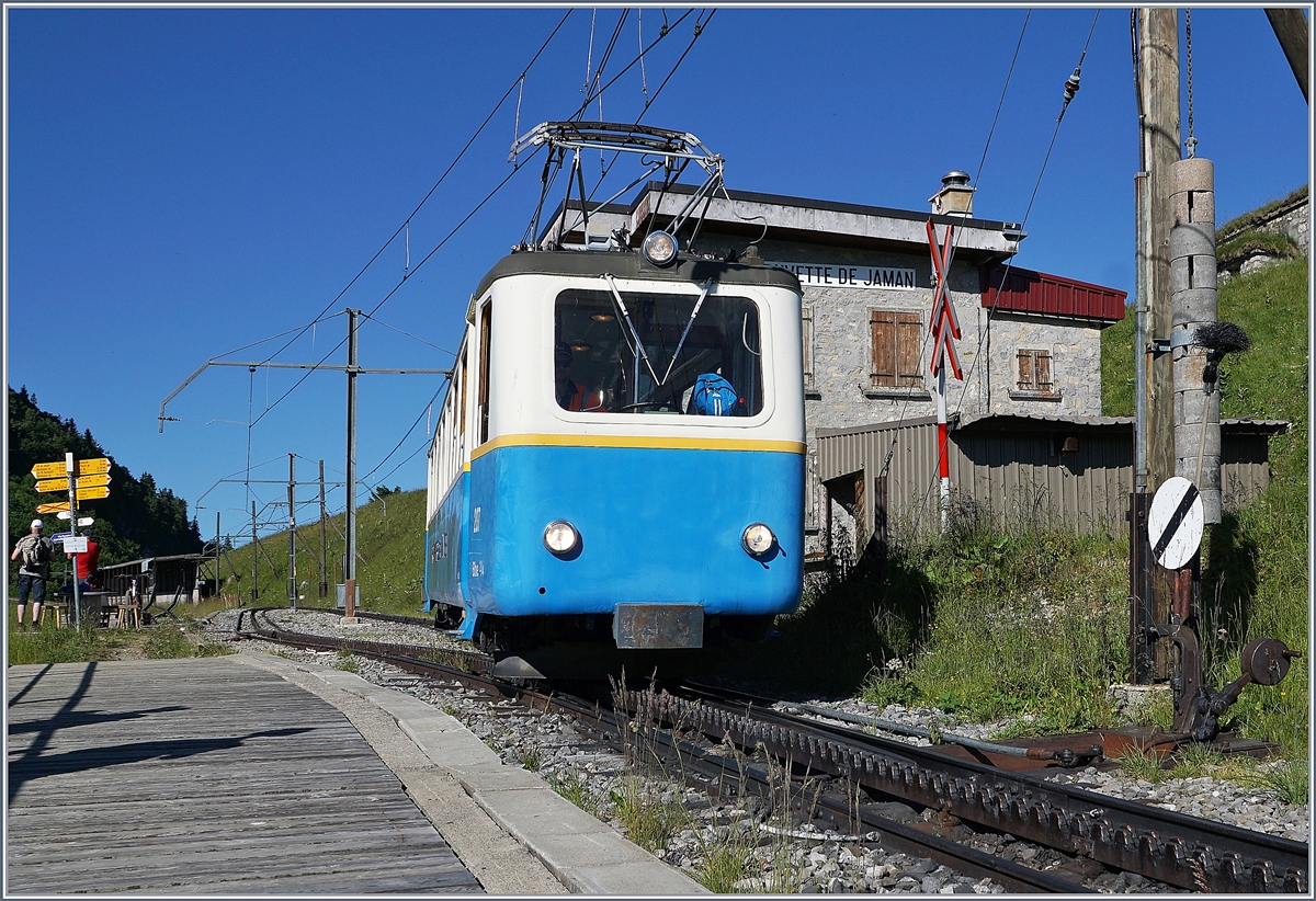 Die Hem 2/2 11 wartet mit einigen Güterwagen in Glion auf Beginn der Bauphase II, welche für drei Wochen die Rocheres de Naye Bahn eine komplete Einstellung der Planverkehrs bedeutet ( SEV Montreux - Le Haut de Caux, ab dort keine Verkehr auf den Rochers de Nayer).