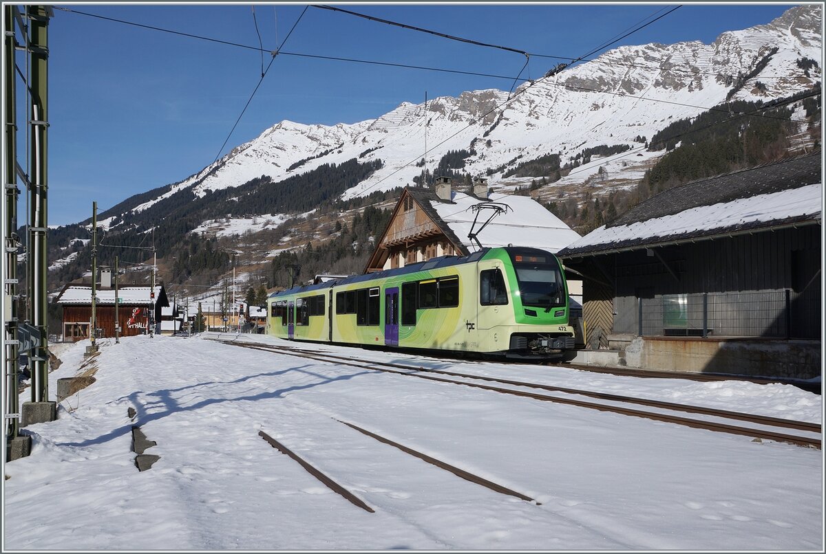 Nach einem kurzen Aufenthalt wird der ASD BDe 4/4 404 und sein Bt 431 Les Diablerets verlassen und nach Aigle zurückfahren.