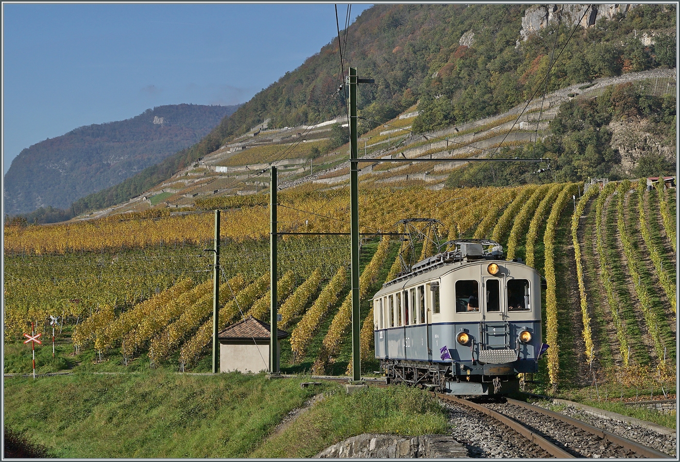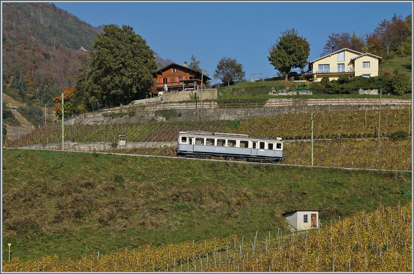 Am 2. November lud die "Association ASD 1914" mit ihrem ASD BCFe 4/4 N° 1 "TransOrmonan" zu einer Jass-Fahrt ein. Das Bild zeigt den "Association ASD 1914" ASD BCFe 4/4 N° 1 "TransOrmonan" oberhalb des Château d'Aigle auf der Fahrt in Richtung Les Diablerets.