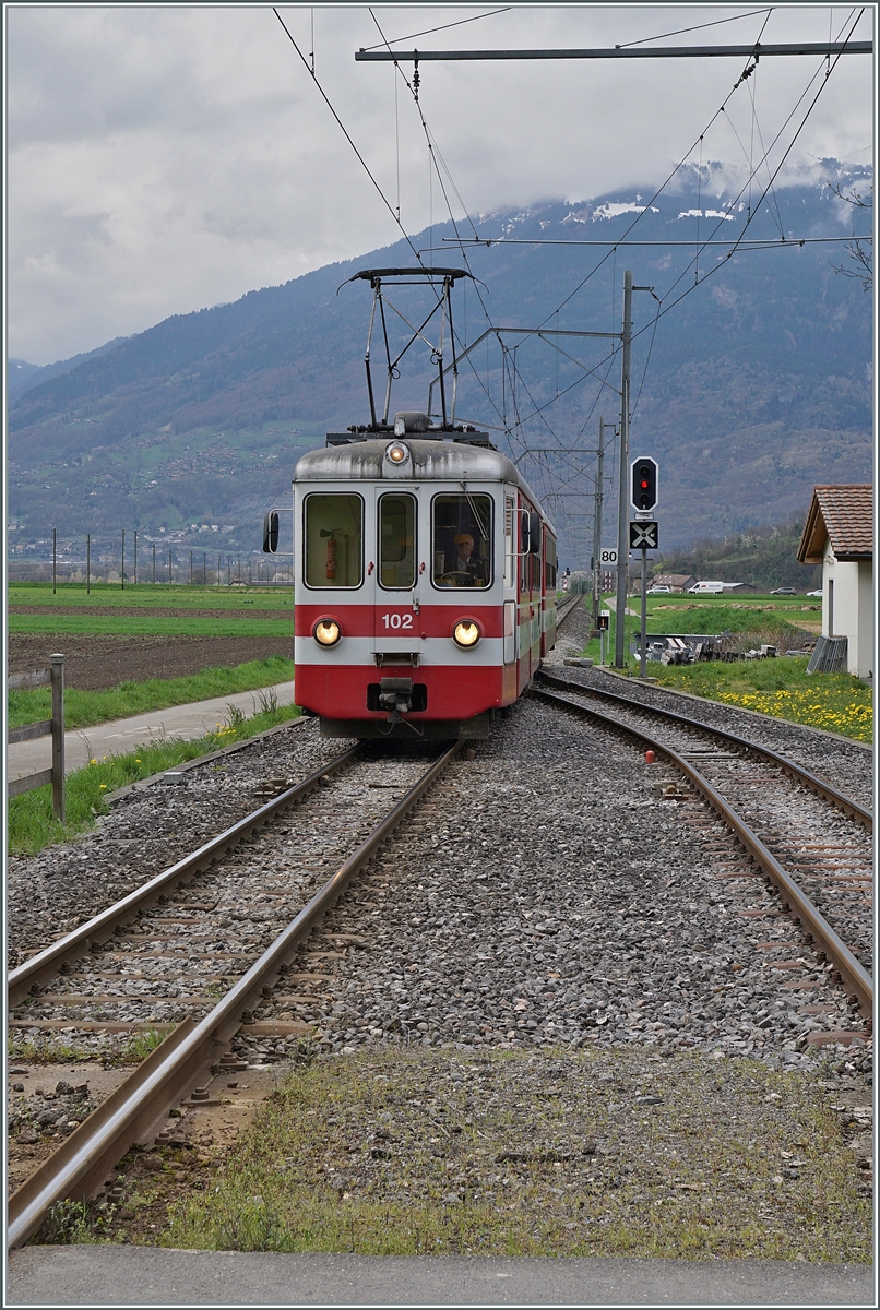 Der TPC Beh 2/6 547 wartet in Aigle auf die Abfahrt nach Champéry.