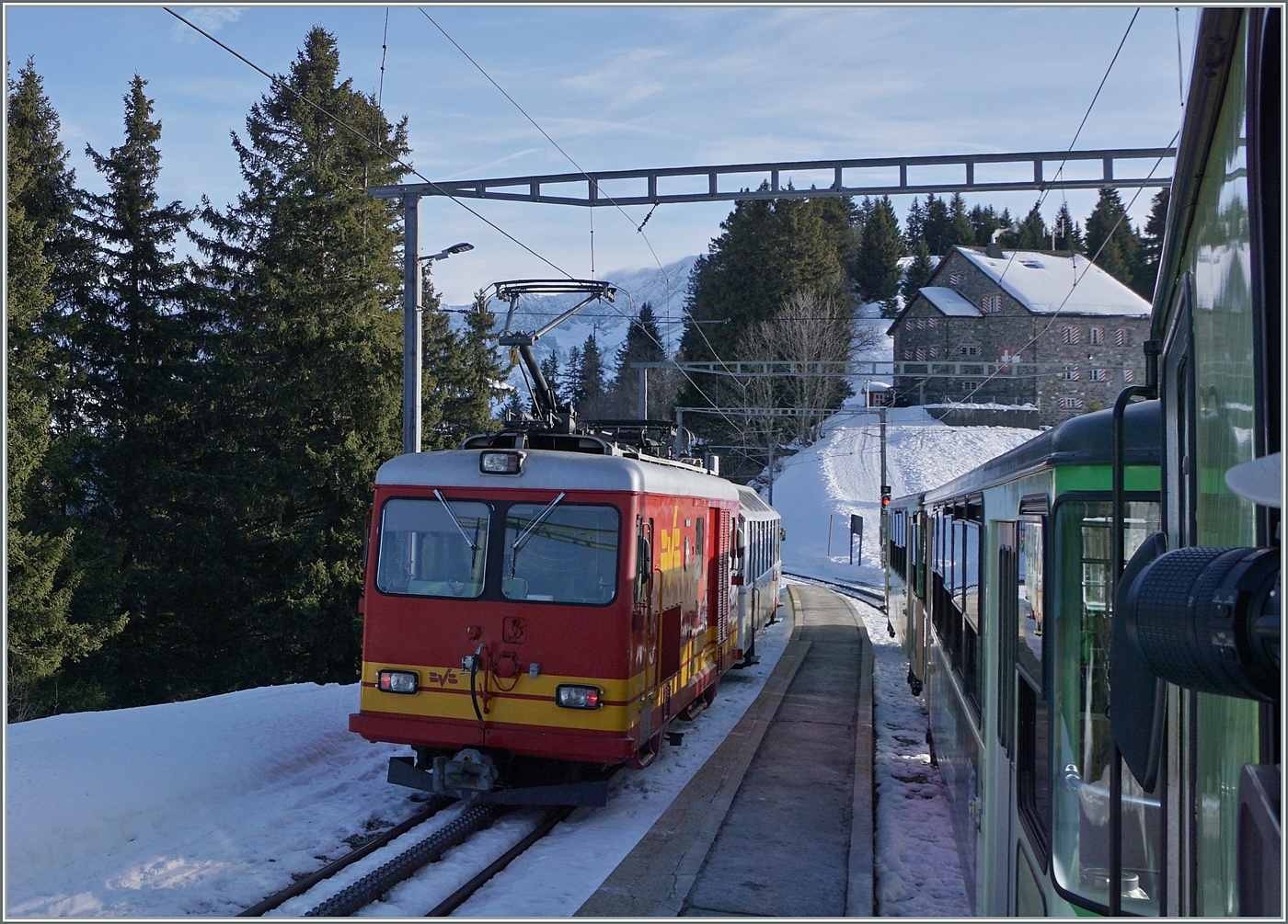Der TPC BVB BDeh 4/8 93 verlässt als Regionalzug 536 den Bahnhof Arveyes und wird in Kürze sein Ziel Villars sur Ollon erreichen.