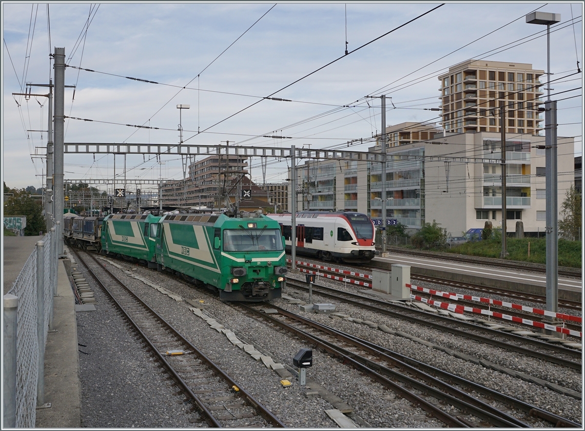 Die SNCF BB 37 060 mit ihrem Güterzug von Lyon nach Lausanne Triage bei seiner Durchfahrt in Morges.