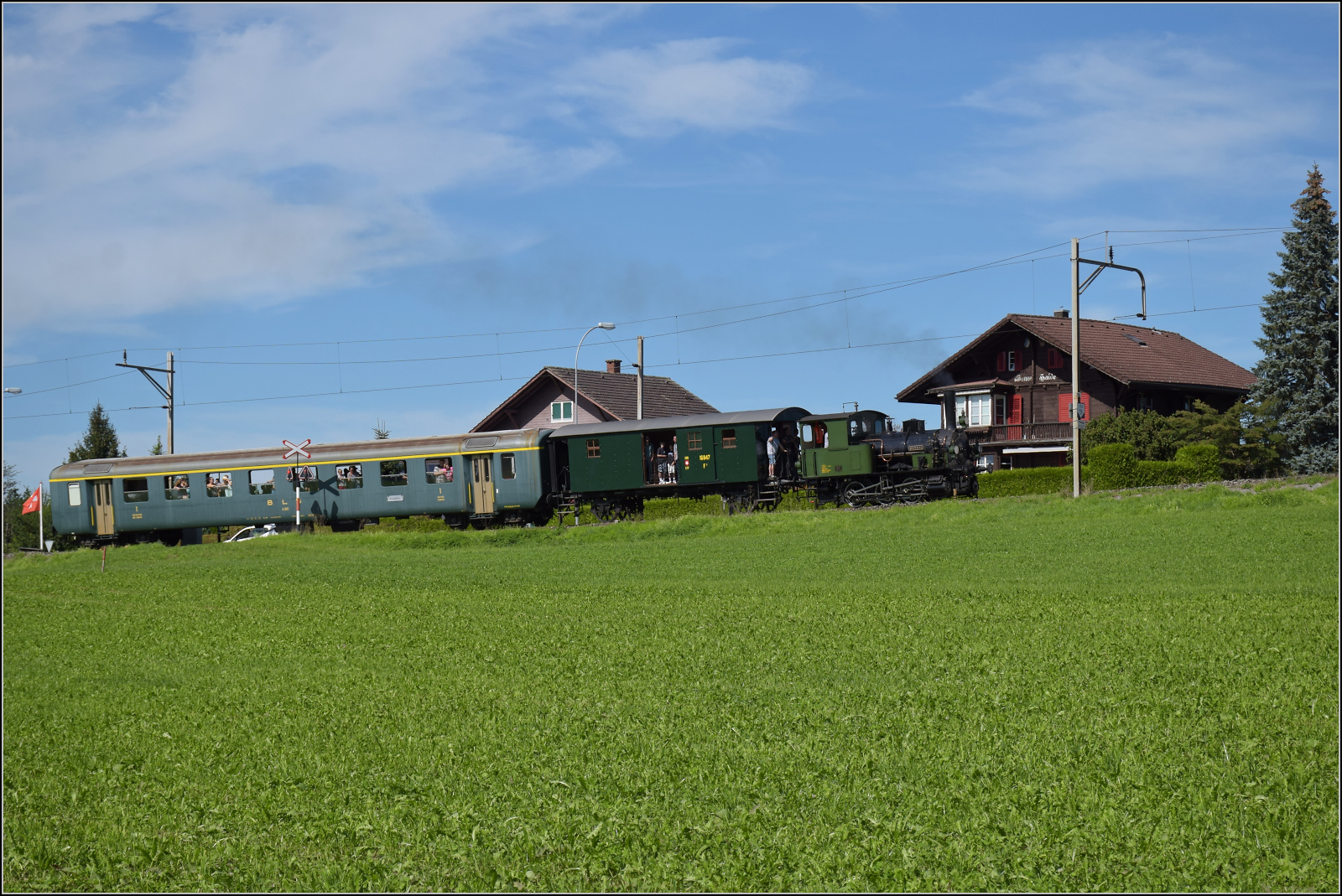 OeBB: Die firsch aufgearbeitete E 3/3 456 (ehemals NOB) vom Verein Historische Seethalbahn wartete am 6. August 2016 auf der OeBB-Endhaltestelle Oensingen auf die Rückfahrt nach Hochdorf.