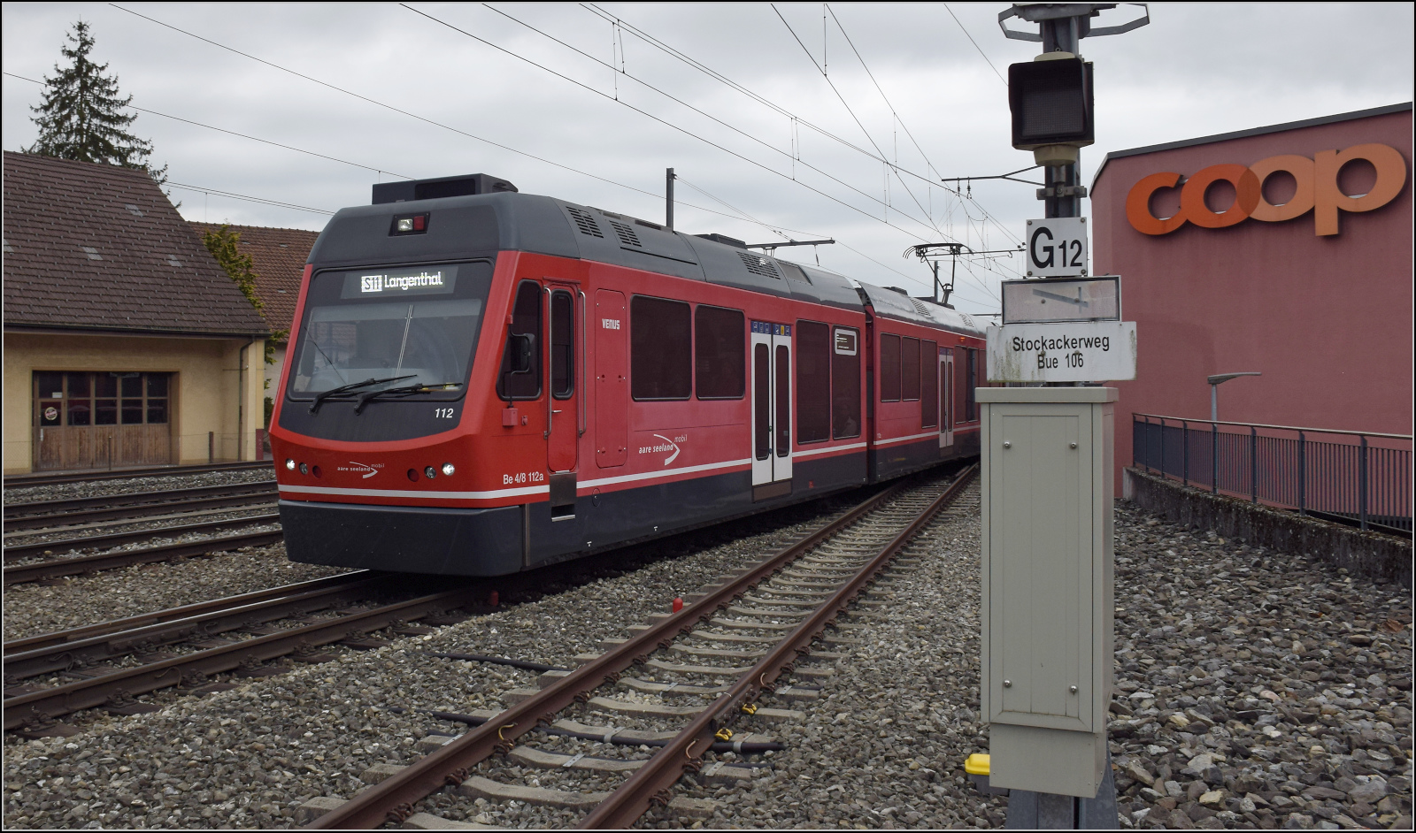 Der asm Be 4/8 112 von Langenthal nach Solothurn erreicht Oensingen.