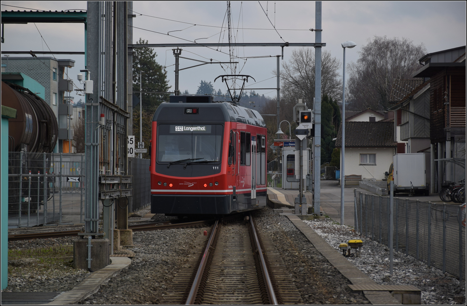 Der ex FW Be 4/4 14 mit seinem Bt (1)14 erreicht von St-Urban kommend sein Ziel Langenthal.