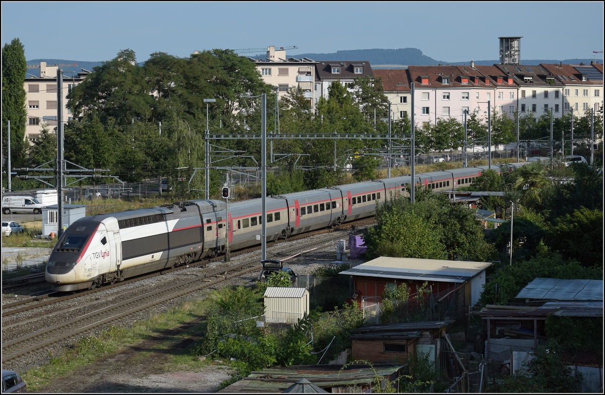 Basel St. Johann. Das Empfangsgebäude selbst ist zwar nicht so alt, aber hinter dem Bahnhof verliefen die ersten Gleise in der Schweiz, lange bevor die Spanisch-Brötli-Bahn gebaut war. Basel, Juli 2017. Olli