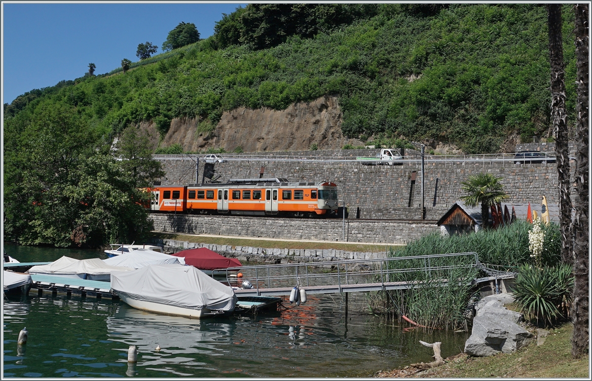 Der FLP Be 4/8 23 "Vedeggio" wartet in Lugano FLP auf die Abfahrt. Interessant auch, das Weichensignal ganz rechts im Bild.