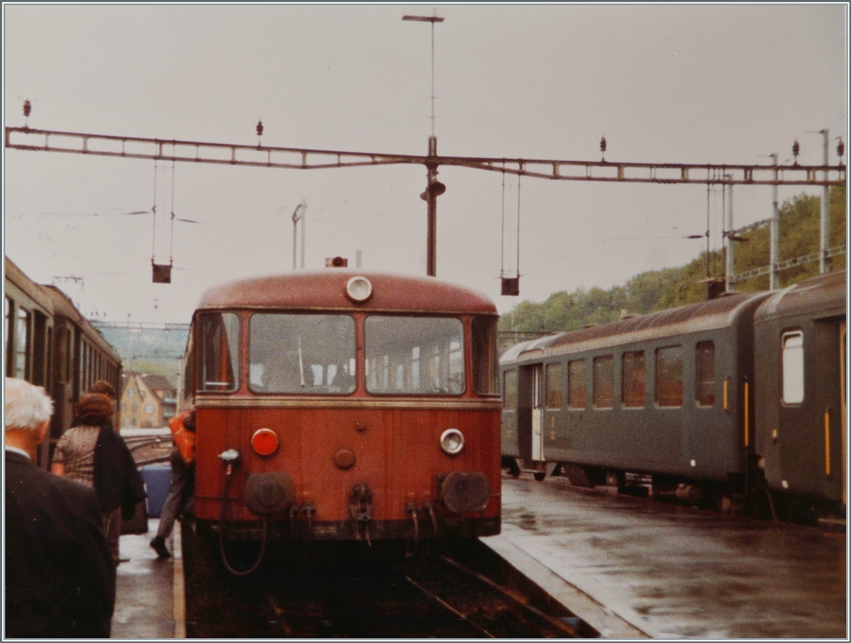 Als kleine Ergänzung zu den interessanten Bildern von Olli zum Thema " Traktionswandel am Hochrhein" hier noch zwei Bilder aus Waldshut: Ein DB Schienenbus wartet auf die Abfahrt nach Koblenz. 9. Mai 1984