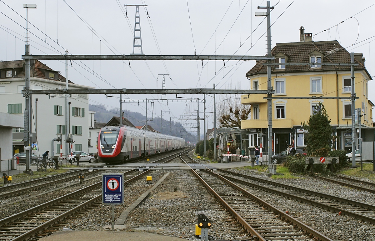 S26-BB-und-IGS-Minitreffen am 27.02.2023: Der Südostbahn-Flirt 526.003 fährt in Rheineck ein