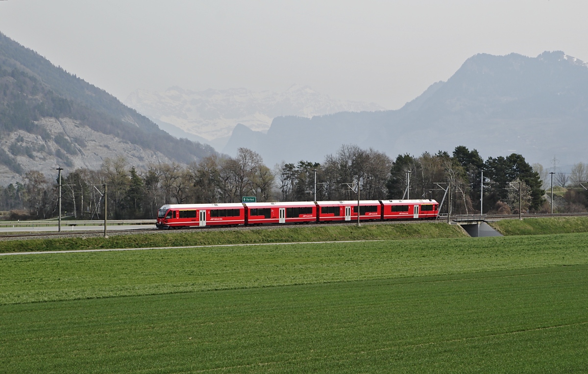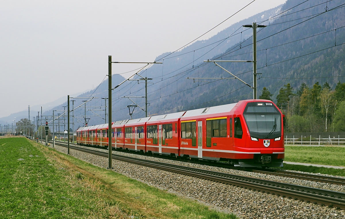 Der Albula Schnellzug RE 1145 Chur - St.Moritz führt nicht nur die Stammkopossition von vier  B  einem  D  und zwei  A , sondern auch noch die GEX Wagengruppen des Glacier Expresse 900 von Zermatt. So hatten die beiden RhB Ge 4/4 I 603 und 602 mit ihren dreizehn Wagen Anhängelast reichlich zu tun.