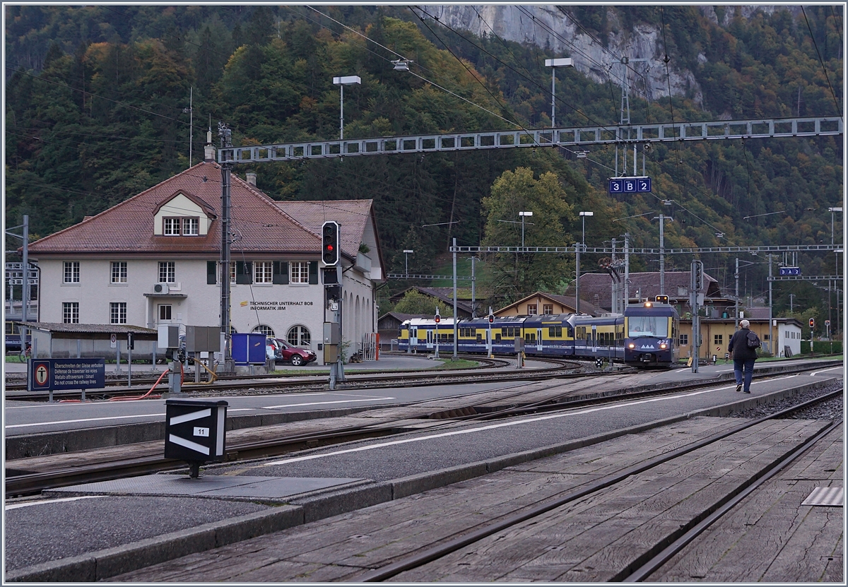 Der BOB ABeh 4/4 310 "Matten bei Interlaken" fährt in Zweilütschinen zurück ins Depot.