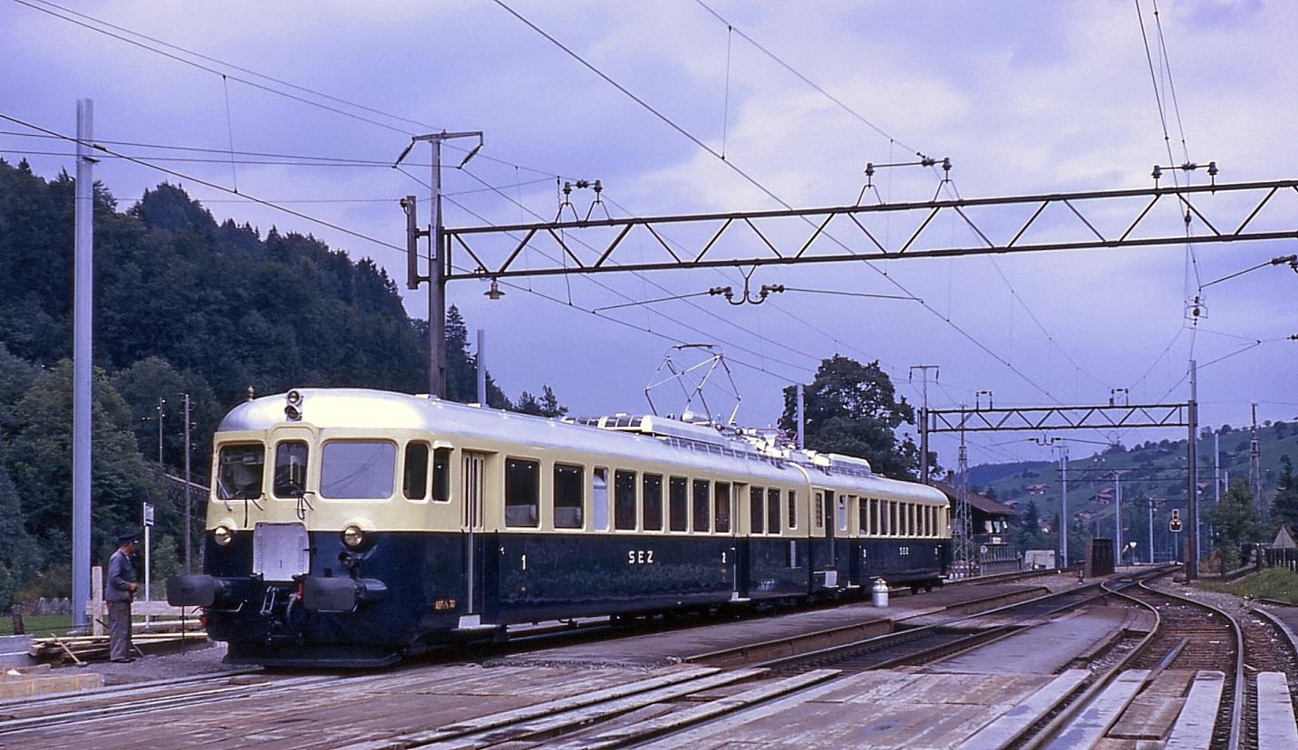 Der OeBB ABDe 4/8 745 (ex BLS 741) wartet in Balsthal auf die Abfahrt nach Oensingen. Rechts im Bild ist wahrscheinich der ABDe 4/8 744 zu sehen, der als Ersatzteilspender diente.