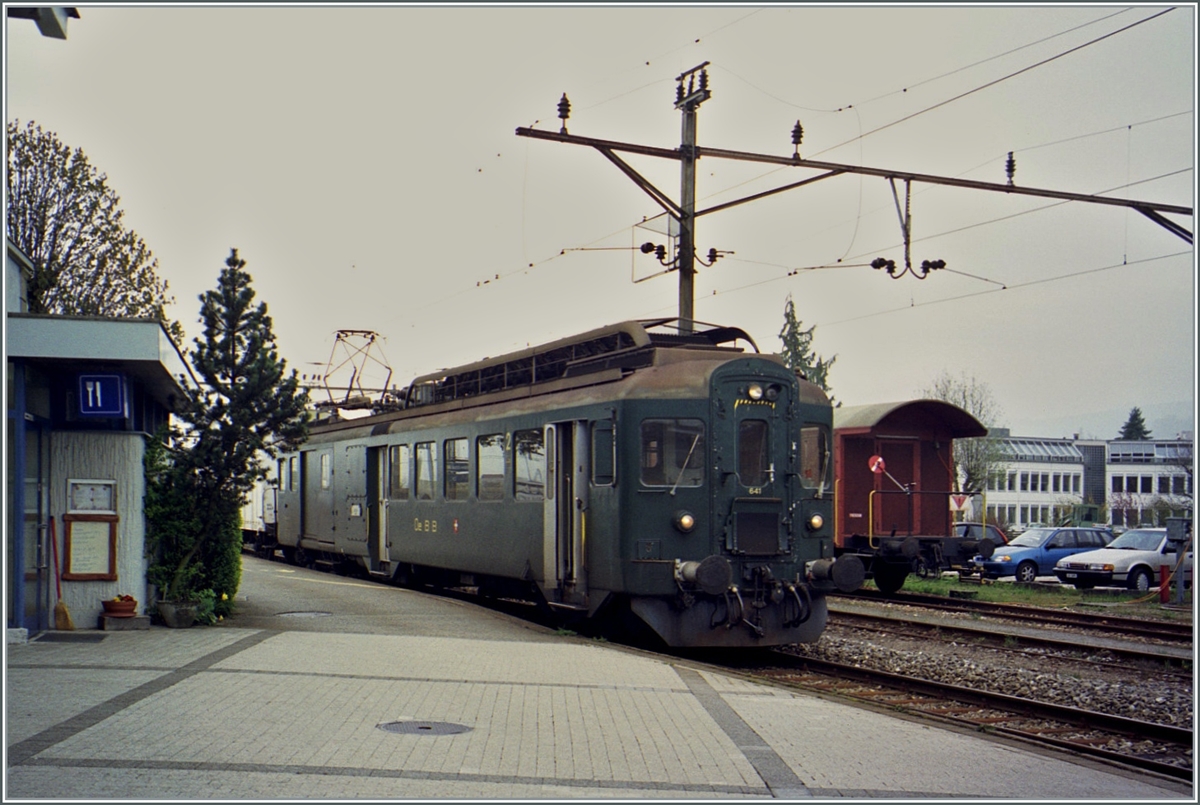In Oensingen ist der OeBB BDe 4/4 641 im Güterverkehr mit dem Manöver beschäftig. Von den SBB für den Bummelzug* Verkehr auf Nebenlinien beschafft, wurden die BDe 4/4 in den 90ern von NPZ RBDe 560 verdrängt. Die OeBB ergriff die Gelegenheit und nutzte dann einige Jahre die BDe 4/4 im Personen- und Güterverkehr.