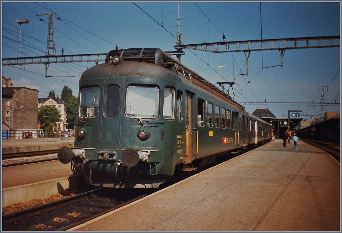 Nur für einen sehr kurzen Moment fotografierbar war in Huttwil dank einem Rangiermanöver ein historischer 4-Wagenzug mit den BDe 2/4 240 und dem BDe 3/4 43 an beiden Einden neben dem ZMB BDe 4/4 92, ehemals SZU.