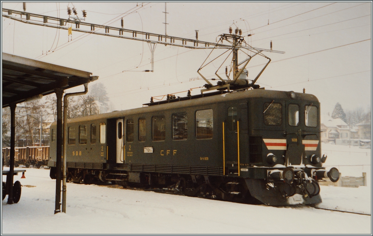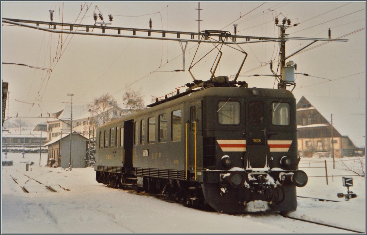 Der Be 4/6 1608 ersetzte an wenigen Tagen im Winter 1986/87 zwischen Beinwil am See und Beromünster die Stammkomposition De 4/4, B, Bti. Das Bild zeigt den Be 4/6 kurz vor der Rückfahrt nach Beinwil am See in Beromünster.